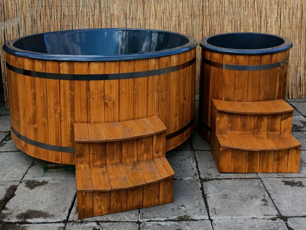 Komplet v ceně 49 990 CZK obsahuje: káď o průměru 200cm. Můžete si vybrat z modré, bílé nebo šedé barvy . Obklad z jehličnatého dřeva tloušťky 20mm. Pevný podstavec s podlahovou deskou. Silná a účinná nerezová kamna na dřevo nebo elektrický ohřívač. U kamen kouřovod s nerezovou stříškou. Dřevěné schůdky. Plastové víko na káď. LED osvětlení (6 barev). Nerezové pásky o šířce 5cm. Nezbytné propojovací příslušenství.