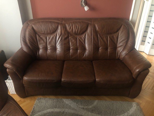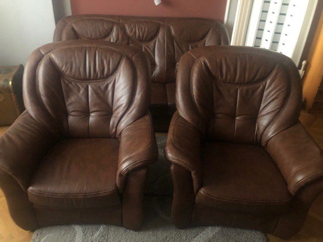Nabízím k prodeji koženou sedací soupravu hnědé barvy , skoro nová, málo používaná , 3-sedák + 2 křesla . Cena 23.000 Kč nebo cena dohodou.s