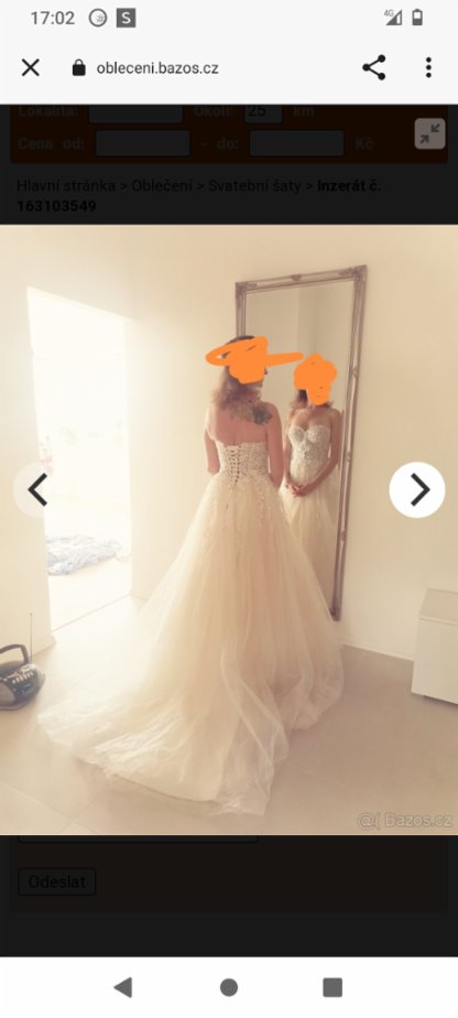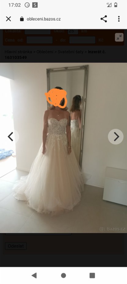 Prodám svatební šaty, jednou použité profesionálně vyčištěné. Barva Champagne.Velikost 36-38. Cena 7.000 Kč.