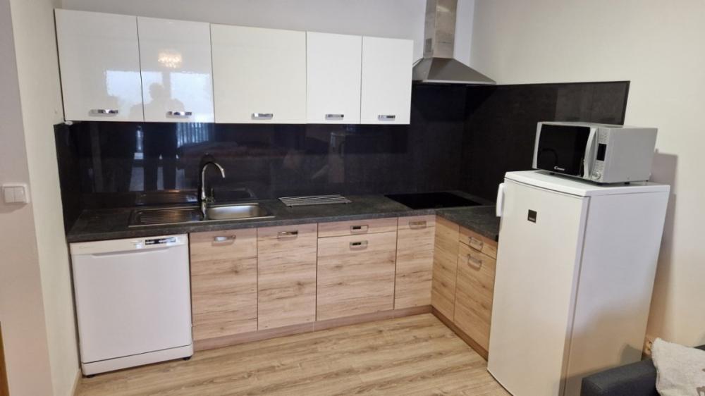 Prodám zánovní rohovou kuchyňskou linku 290 x180 cm, bílá lesk a dub Sanremo, včetně spotřebičů, dřezu s baterií, osvětlení, nádobí a obkladu. Spotřebiče vceně kuchyně: myčka, digestoř, sklokeramická deska, lednice, mikrovlnná trouba a konvice.