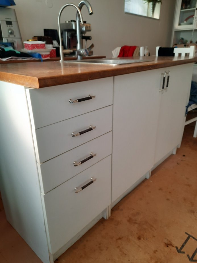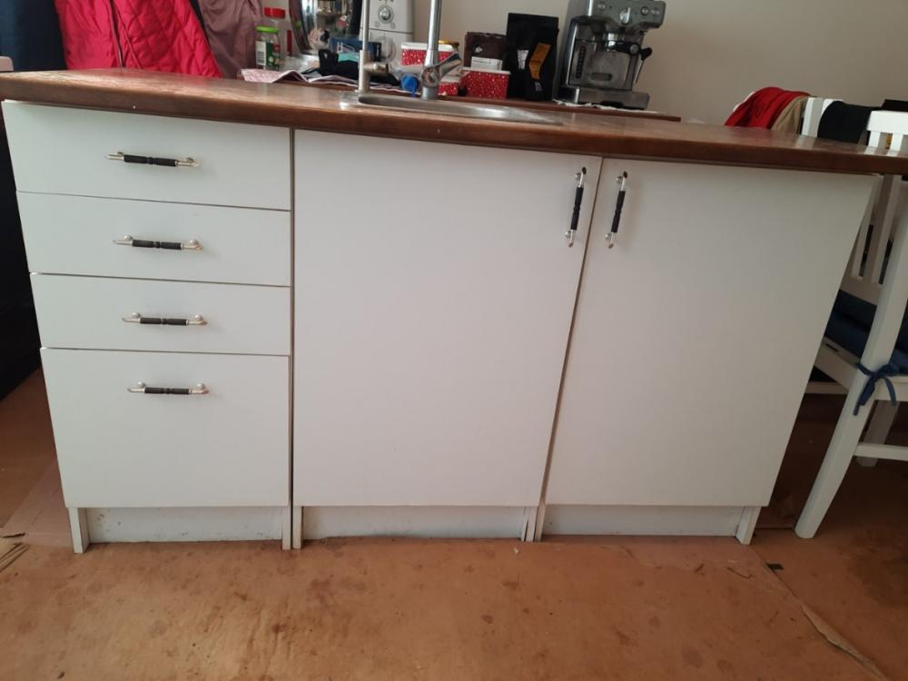 Prodám kuchyňský kout sestávající z těchto částí: 3 dolní skříňky (š x h x v): 40 cm x 50 cm x 83 cm, 50 cm x 50 cm x 83 cm, 50 cm x 50 cm x 83 cm. 1 horní skříňka (š x h x v): 100 cm x 30 cm x 58 cm. 1 rohová skříňka (š x h x v): 110 cm x 50(30) cm x 58 cm. 1 kuchyňská deska (š x h x v): 150 cm x 60 cm x 3 cm. 1 dřez a 1 baterie.