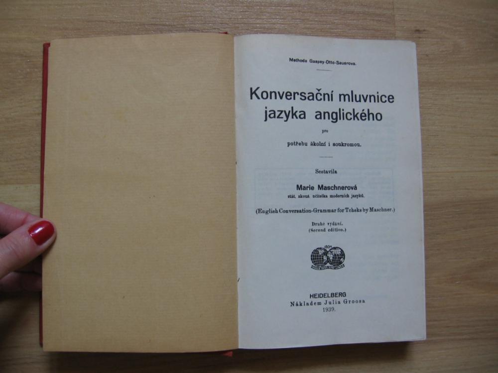 Nabízím krásnou starobylou knihu "Konversační mluvnice jazyka anglického", kterou sestavila Marie Maschnerová (stát. zkouš. učitelka moderních jazyků). Kniha je vedena podle Methody Gaspey-Otto-Sauerovy. Pro potřebu školní i soukromou. Obsah knihy (viz fotografie). Nabízí jak výslovnost, gramatiku, slovníček, fráze, tak konversace. Kniha je na svůj věk velice zachovalá, téměř nepoužívaná, bez vad, pevná vazba. Rok 1939, 382 stran, Nakladatelství Julia Groosa, Heidelberg. 149 Kč.
