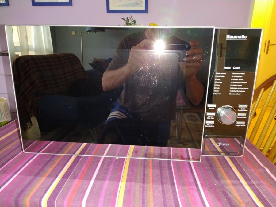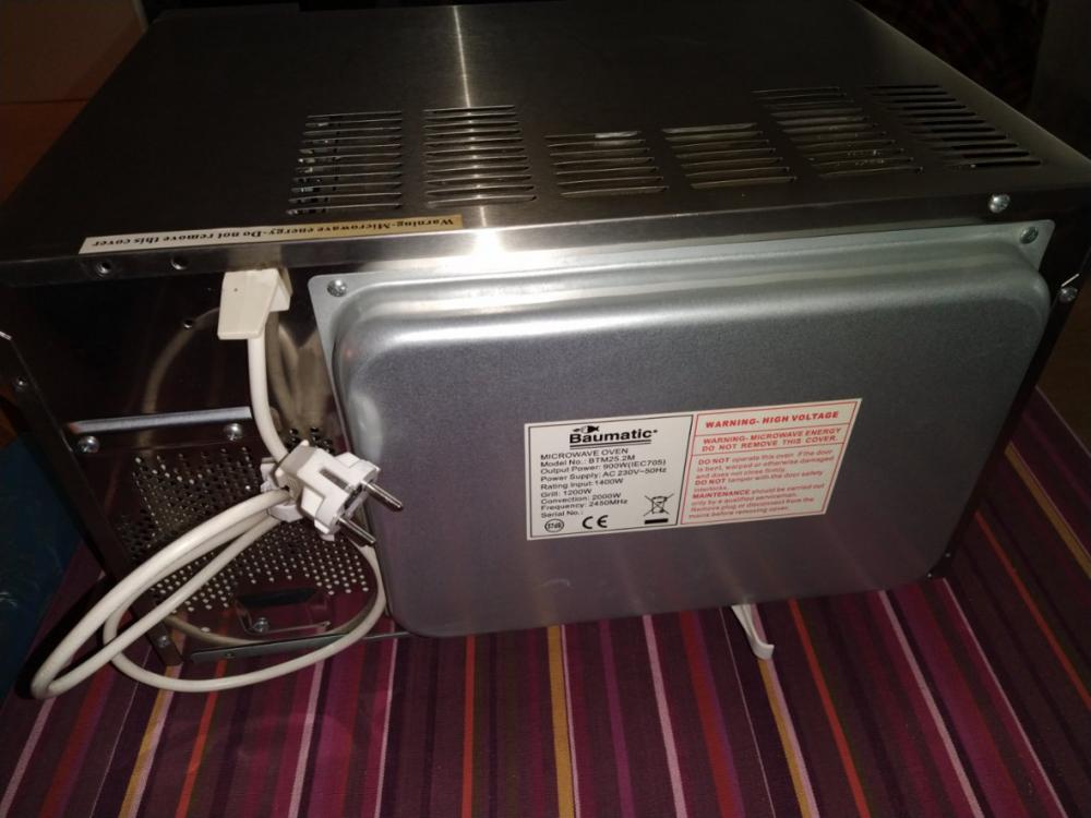 Zánovní mikrovlnná trouba Baumatic 25.2M, funkce: automatické ohrati, automatické rozmrazování, gril, horky vzduch, objem 25l, 10 stupňů výkonu, funkce rychlého startu, tlačítkové ovládání, digitální programovatelné hodiny, bezpečnostní zámek, výkon mikrovln 900W, výkon grilu 1000W, vnitřní povrch nerez. Perfektní stav. Cena 2.200 Kč.