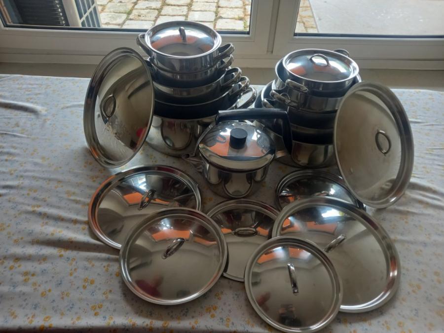 Prodám nerezové nádobí sada 12 ks + konvice. Výborný stav - málo používané. 1.000 Kč.