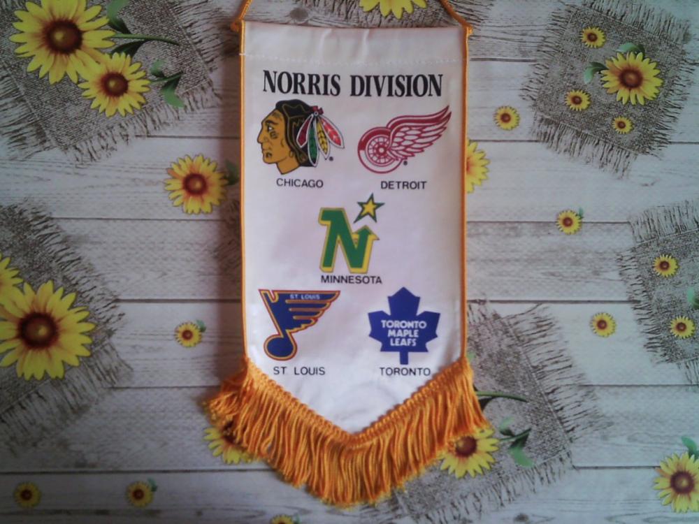 NHL vlajky klubů - platné před cca 40 lety, koupené v Los Angeles. Rarita pro sběratele předmětů NHL. Cena 300 Kč za vlajku, komplet 1.500 Kč. Kulatý odznak LA Kings cena 200 Kč.