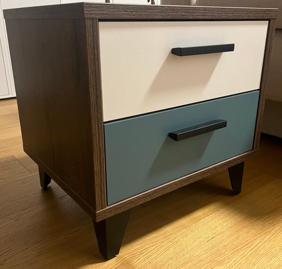 Prodám zánovní noční stolek o velikosti šířka/výška/hloubka: 49,8/48,4/41,5 cm. Na stolku nejsou známky opotřebení, žádné rýhy, škrábance. Je jako nový. Prodáván je již sestavený. V případě zájmu prodávám ve stejném stylu také psací stůl a komodu pod TV (inzerát k nalezení zde v příslušné kategorii popř. mohu v případě zájmu poslat foto).