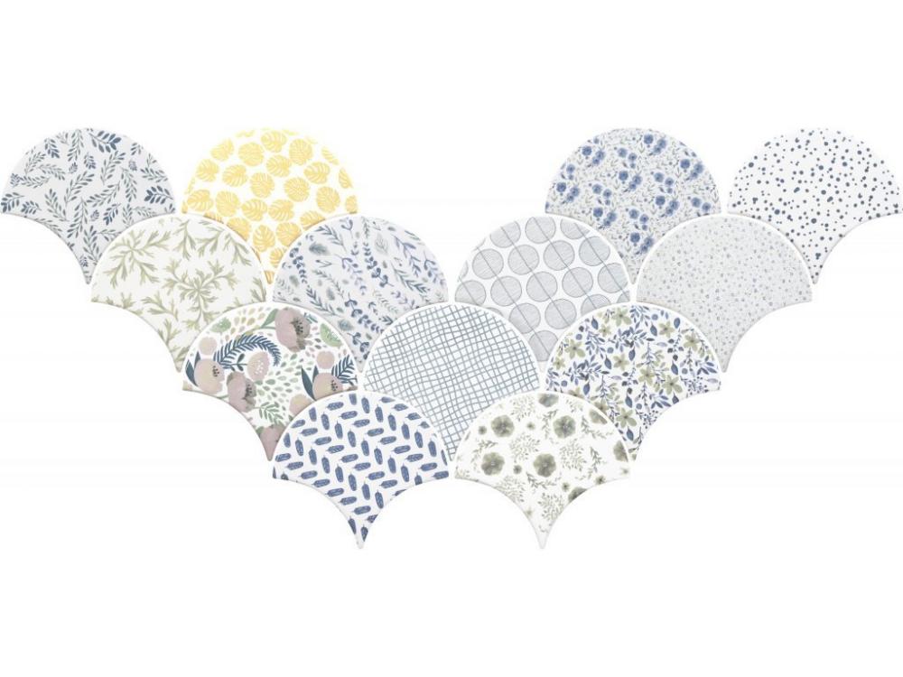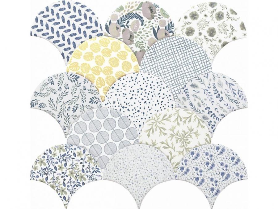 Luxusní obklady (dovoz ze Španělska) celkem na plochu 3m2, včetně rezervy na prořez. Obklady mají tvar "rybí šupiny", šířka x výška jednoho obkladu 13,5 x 15 cm. Jedná se o patchwork - mix různých dekorů. Nejvíce by jim to slušelo nejen v bytě, ale i na chalupě. Obklady jsou nové, nepoužité. PC 15.276 Kč, doklad o koupi máme. Velká sleva, cena dohodou.