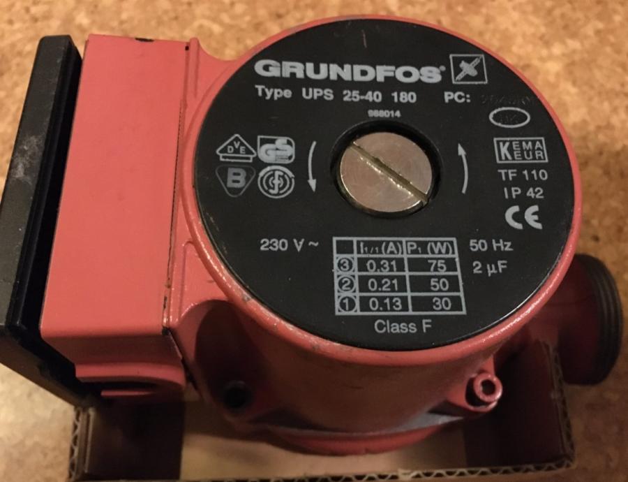 Oběhová čerpadla Grundfos UPS 25-40 180 mm pro rozvod vody do topného systému, 4 kusy lehce použité + 1 ks nový, cena 3.895 Kč, resp. 4.995 Kč.