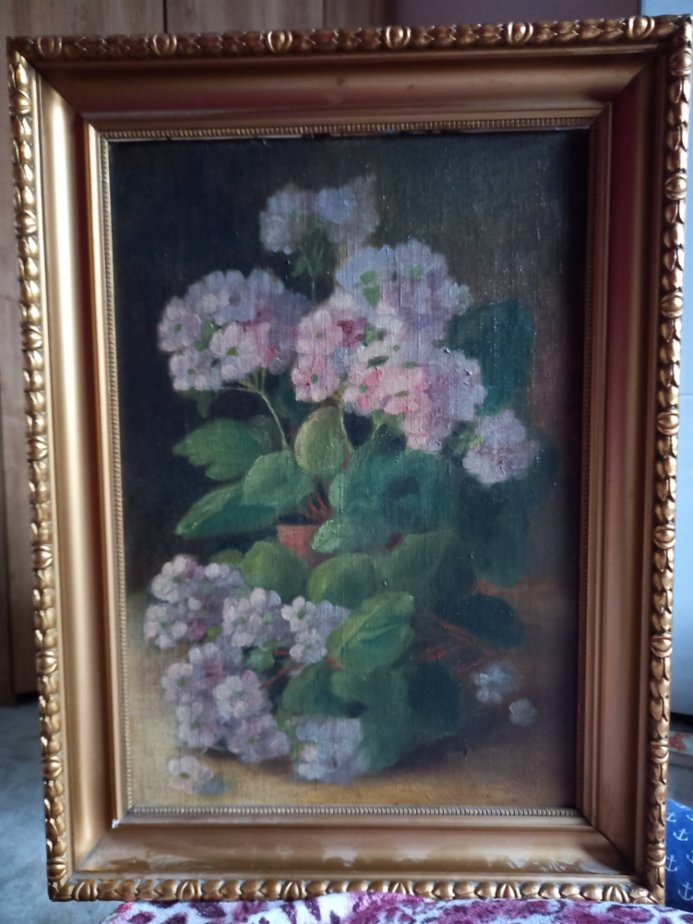 Obrazy od autorů Ot. Nejedlý, O. Kubina, rozměry: š. 37.5cm, v. 26cm. Otakar Kubina Hortenzie v květináči s certifikátem s rozměry: š. 38cm, v. 35.5cm.