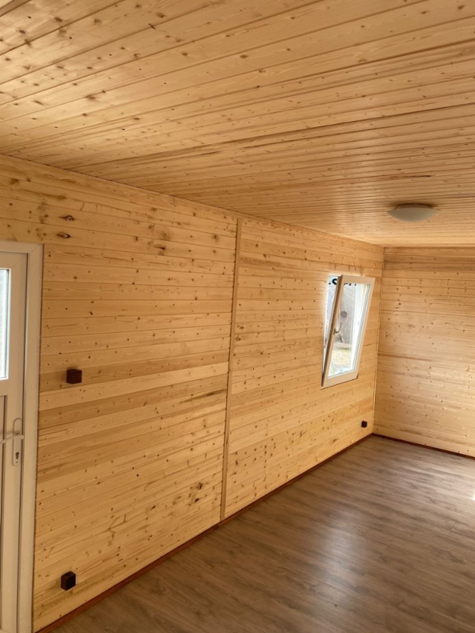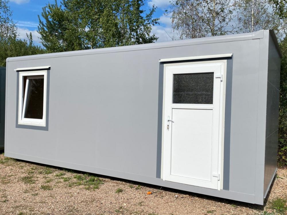 Stavební buňka, rozměry :6,2m x 2,5 m x2,5 m. Nové plastové dveře a okno, plovoucí podlaha , rozvod el.220 V. Po dohodě odvoz možný do 50km zdarma.