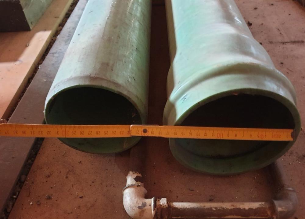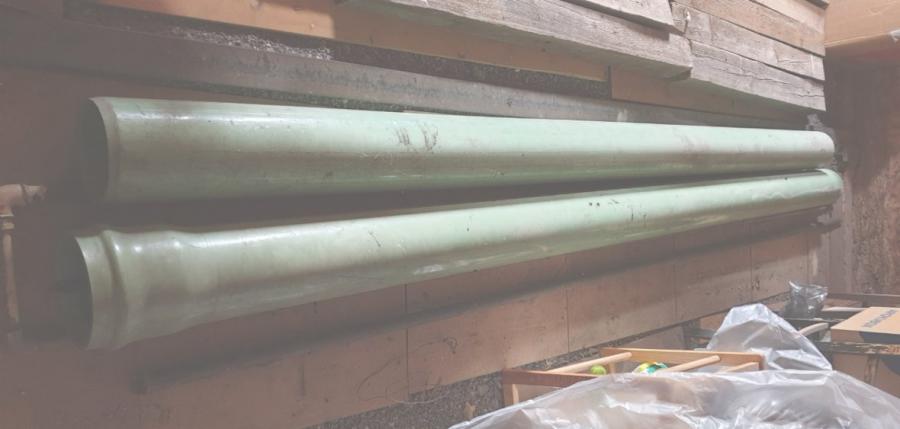 Odpadní trubky, asi PVC - viz foto. Délka 290 a 307 cm, průměr vnitřní cca 14,2 cm a vnější 16 cm. Ta delší trubka má asi 14 cm dlouhou širší část, do které jde nasunout ta kratší trubka. Cena 699Kč za kus. Předání Mnichovo Hradiště.