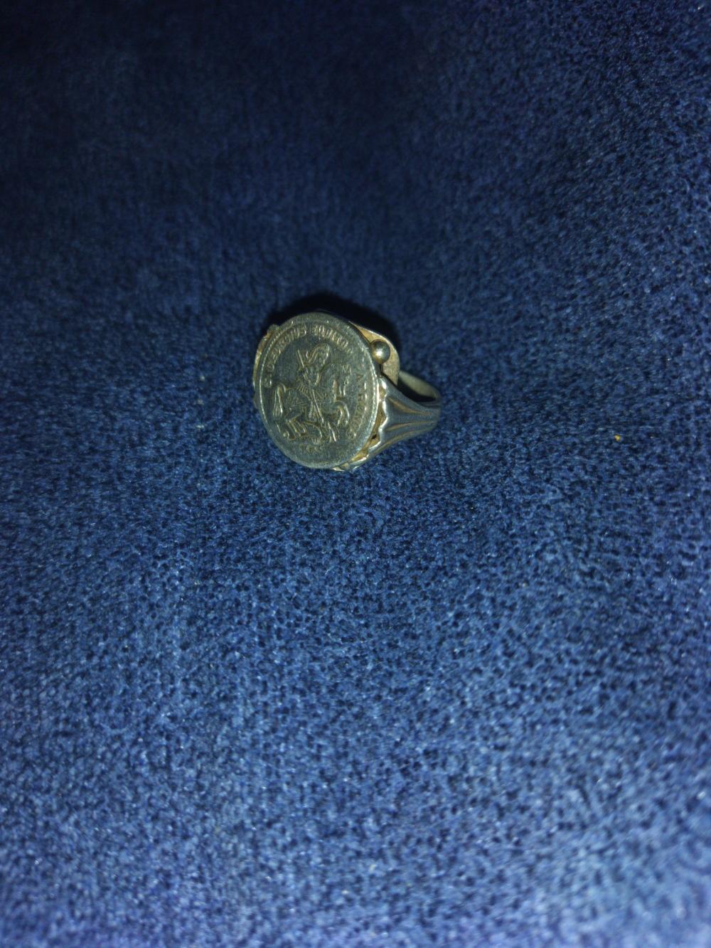Stříbrný prsten (pečetní) sv.jiri boj s drakem