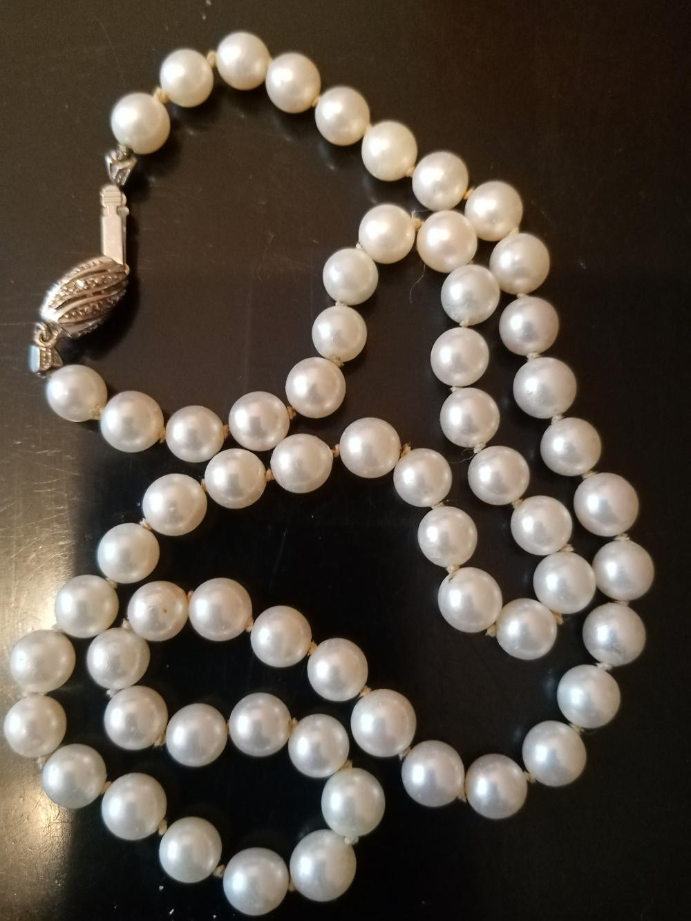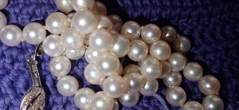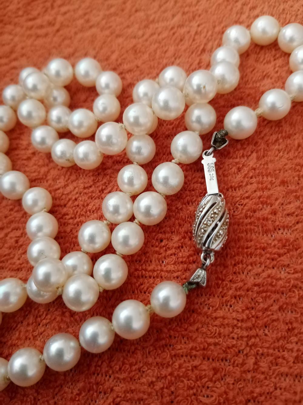 Perlový náhrdelník s 62 ks.perličiek 6-7mm.zapinani 14.k.au.