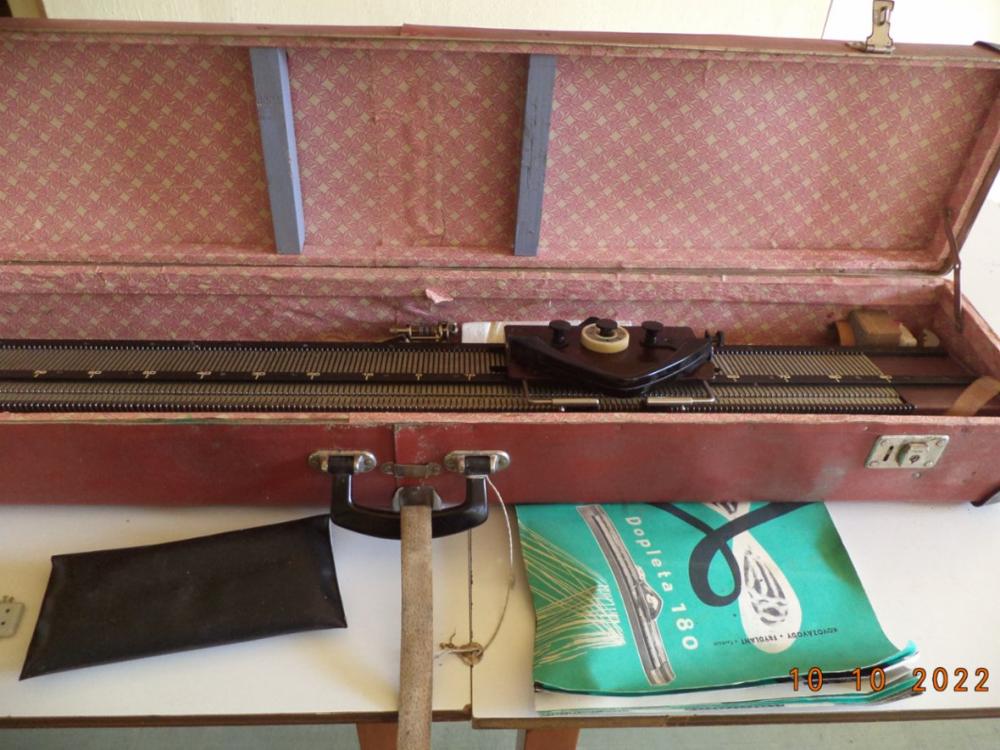 Pletací stroj, v dřevěné bedně, starší. Cena dohodou