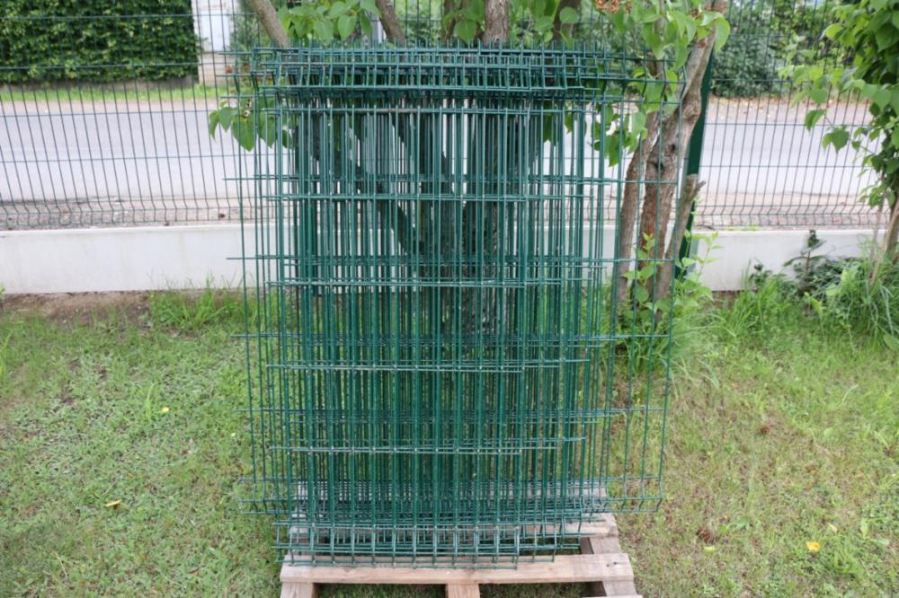 Svařované plotové panely Pilofor Classic ze systému pilecky.cz Výška 1230 mm, průměr drátu 5 mm, povrchová úprava pozink+ PVC, barva zelená. 2x celý panel - šířka 2500 mm (použitý) (cena 800 Kč/kus). 1x zkrácený panel - šířka 1700 mm (použitý) - (cena 500 Kč). Odřezky nových panelů. 12 kusů v délkách: 540, 600, 650, 5x 750, 2x 790, 940, 1140 mm. Cena 800 Kč za všechny odřezky.