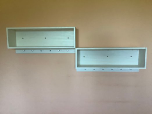 Prodám polici s háčky, rozměr: v. 340, š. 850, hl. 220 cm. Vyrobeno truhlářem na zakázku, je ze dřeva, vhodné do předsíně, dětského koutku apod. Mám celkem 2 ks, prodávám i jednotlivě, cena 250 Kč/kus. Osobní odběr: Praha – Chodov.