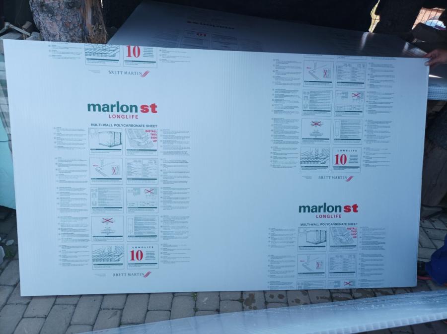 Polycarbonátově desky 210 cm x 125 cm Marlon ST Long Life - 3 x komuřkové (dutinkové) Makrolon® 4/10 je čtyřstěnná polykarbonátová deska o tloušťce 10 mm. Kombinuje vysokou propustnost světla, výbornou tepelnou izolaci a dobrou únosnost danou Y-strukturou. Deska je lehká, odolná proti nárazu a snadno se instaluje.Délka komůrek: 2000 mm Propustnost světla: 61%. 550 Kč za kus.