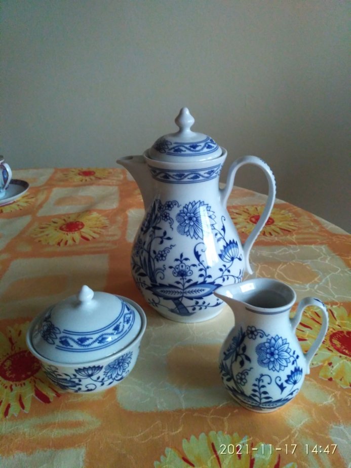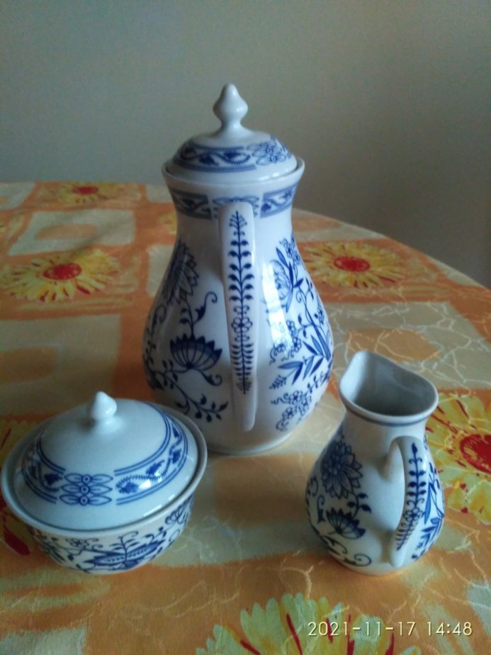 Konvici na čaj, objem 750ml za 85 Kč, cukřenku za 45 Kč a nádobu na mléko za 45 Kč. Případně vše dohromady za 99 Kč. Jde o porcelán Henriette vyrobený v Československu. Pouze osobní odběr.