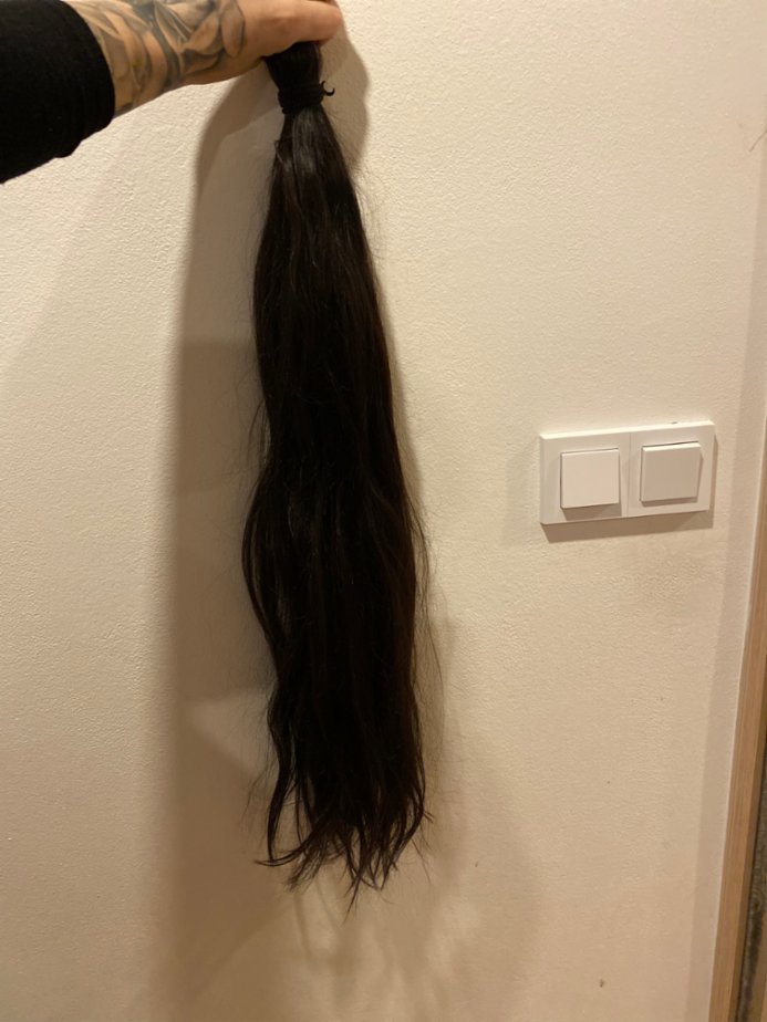 Prodám černé použité pravé středoevropské vlasy. Použité byly pouze 14 dní, v perfektním stavu. Délka 70cm, váha je 220g. PC: 25.000 Kč, nechám za 10.000 Kč.