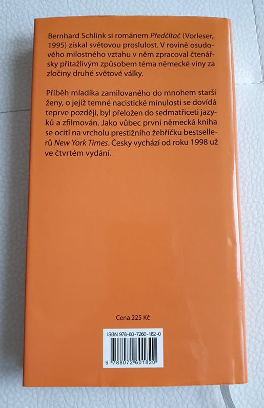 Bernhard Schlink - Předčítač - pevná vazba, 161 stránek, stav skoro jak nová, integrovaná záložka (provázek). Vydavatelství Prostor. Příběh mladíka zamilovaného do starší ženy s nacistickou minulostí. Bylo i zfilmováno. Přidám i doklad o mé koupi. Možné předání: Praha 6 Petřiny nebo Mnichovo Hradiště nebo Zásilkovna. Rozměr cca 21x13cm. Cena 140 Kč.