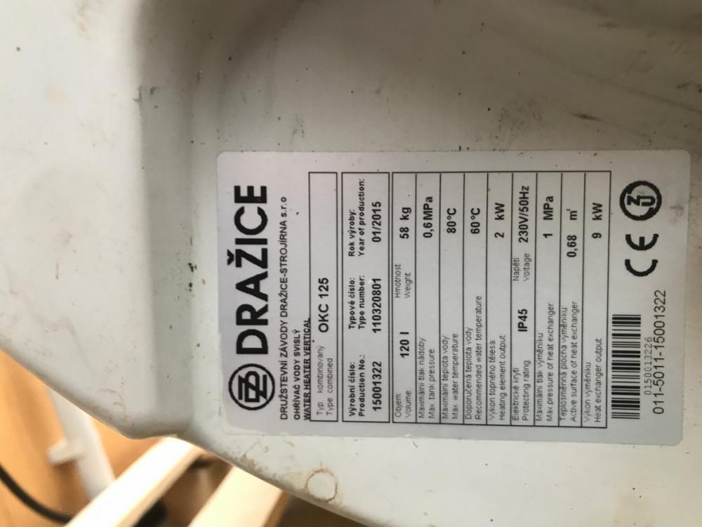 Bojler Držice 125 L r.v. 2015, již nelze jako kombinovaný, ale na obyčejný ohřev vody bez problémů funguje. Elektrické komponenty všechny v pořádku. Zbytek viz. foto a štítek.