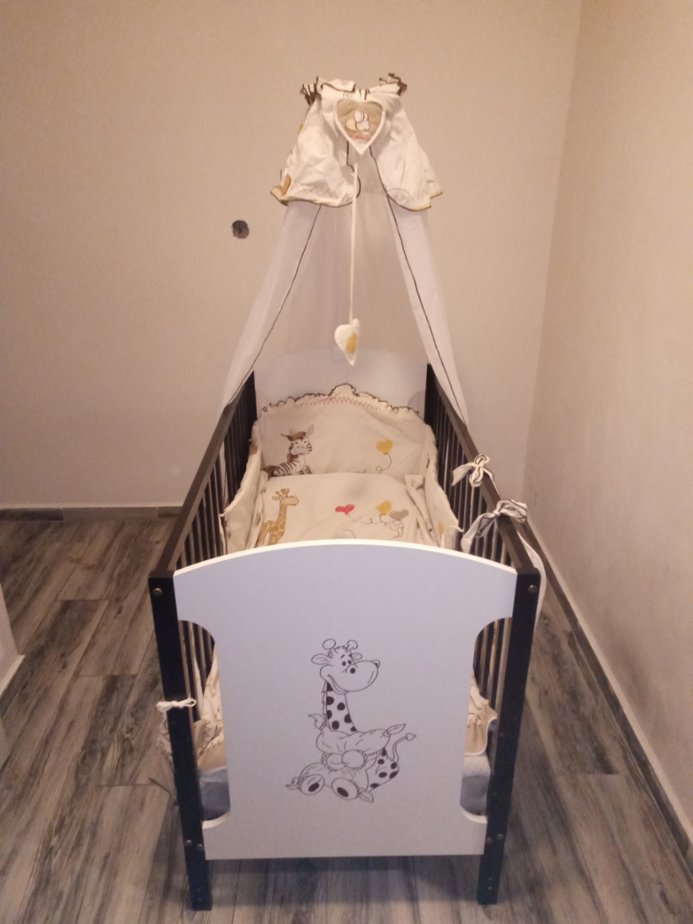 Prodám dětskou postýlku s kompletní výbavou po jednom dítěti.výškově polohovatelná, mantinely zavinovačka, nebesa, kapsář na boku, polštář a peřina včetně povlečení, originální matrace + ještě přidám kvalitní pěnovou matraci Wellpur. Používaná dva roky.PC 5.900 Kč + 1.500 Kč matrace, nyní vše za 3.000 Kč.