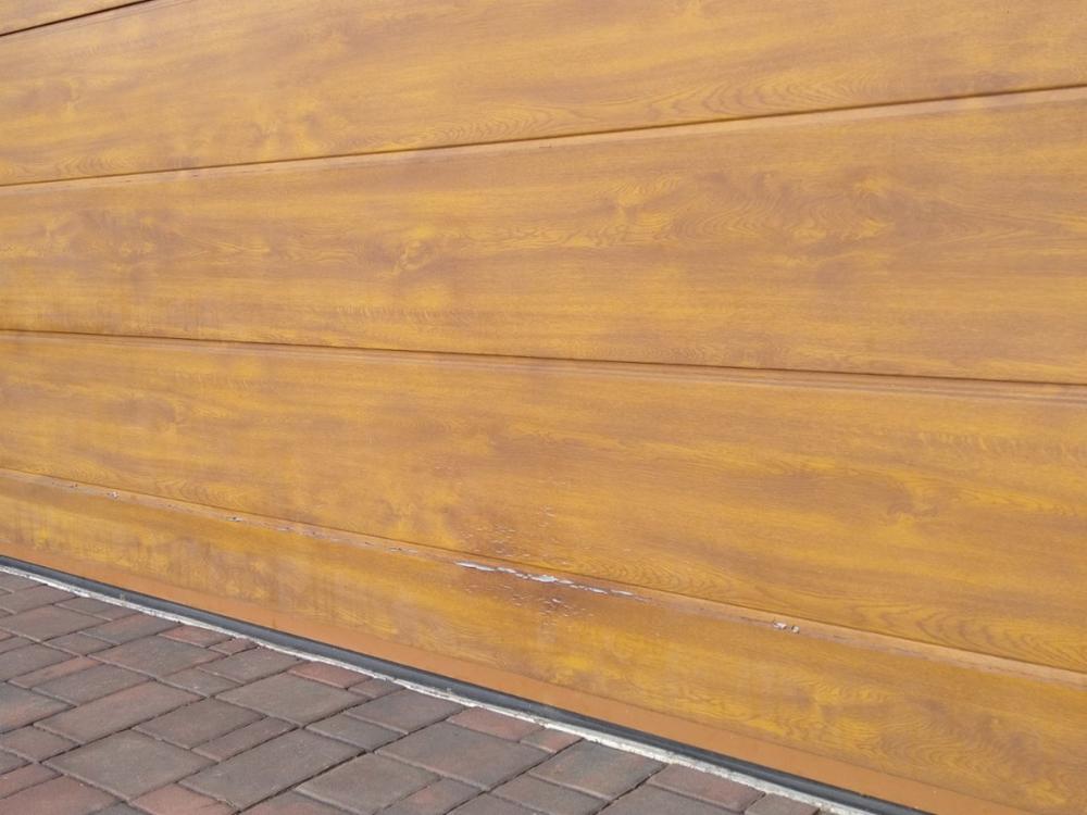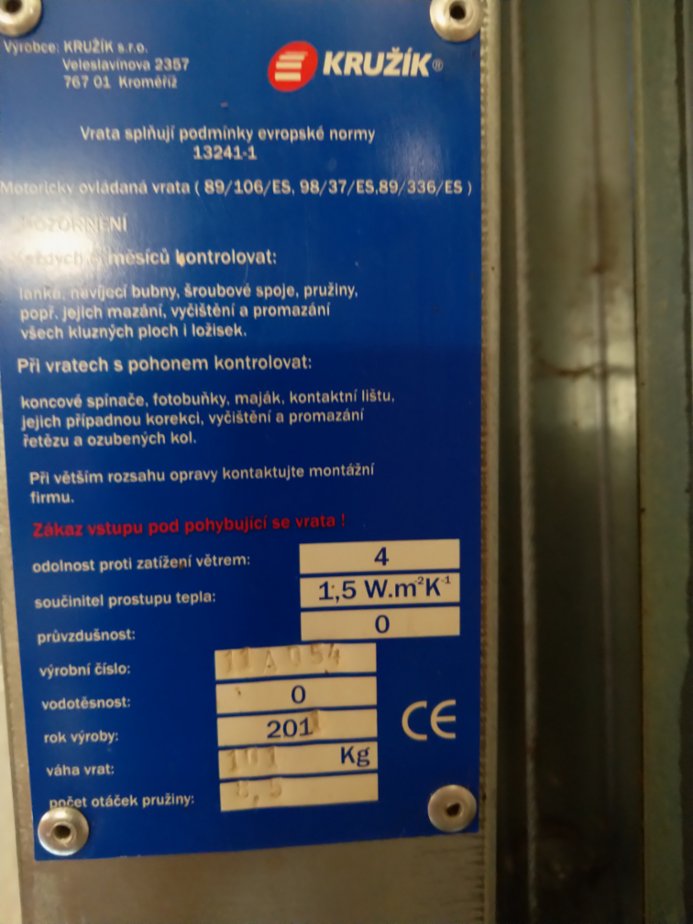 Prodám garážová vrata Kružík. Rozměr šířka: 400,5cm, výška 220cm. Plně funkční včetně motoru a ovládání, barva zlatý dub. Dolní 2 sekce se loupou (ochranná folie). Na funkčnost nemá žádný vliv. Cena 15.000 Kč. Demontáž a montáž vrat lze zajistit u firmy, která vrata montovala. Potřebný montážní prostor pro upevnění vrat od překladu po strop je 25cm.