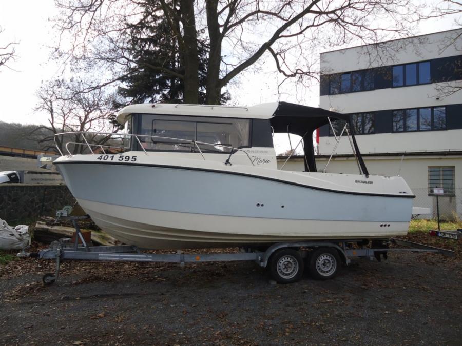 Prodám použitou loď Pilothouse 675 QS se 2 kormidelnami. R. v. 2016, délka lodi 6,30 m, šířka 2,54 m, ponor 0,50 m, výtlak 1,70 m, výška nad hladinou 2,23 m. U lodi je závěsný motor Mercury 115ELPTO, r. v. 2016, výkon 84 kW.