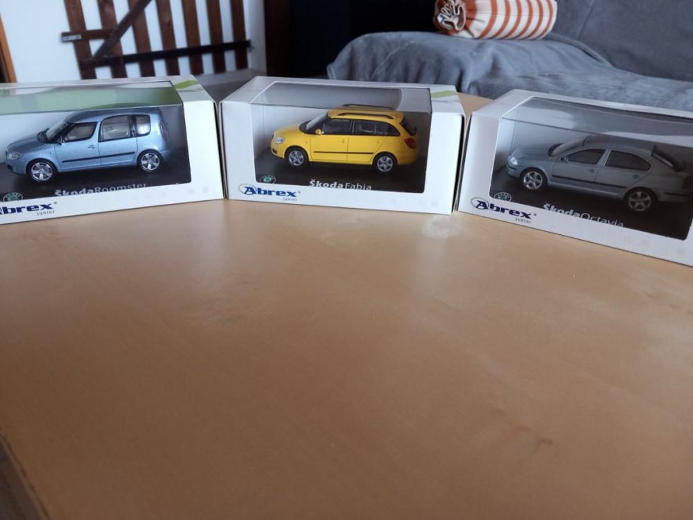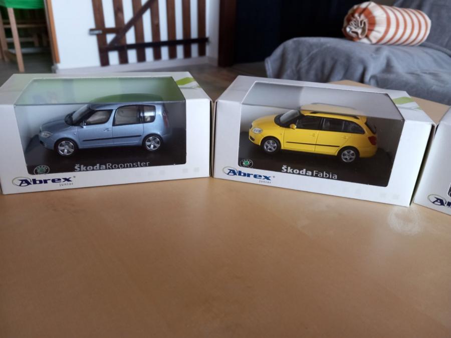 Prodám modely autíček Škoda Roomster, Fabia combi I, Octavia I od Abrexu. Cena 500 Kč za kus.