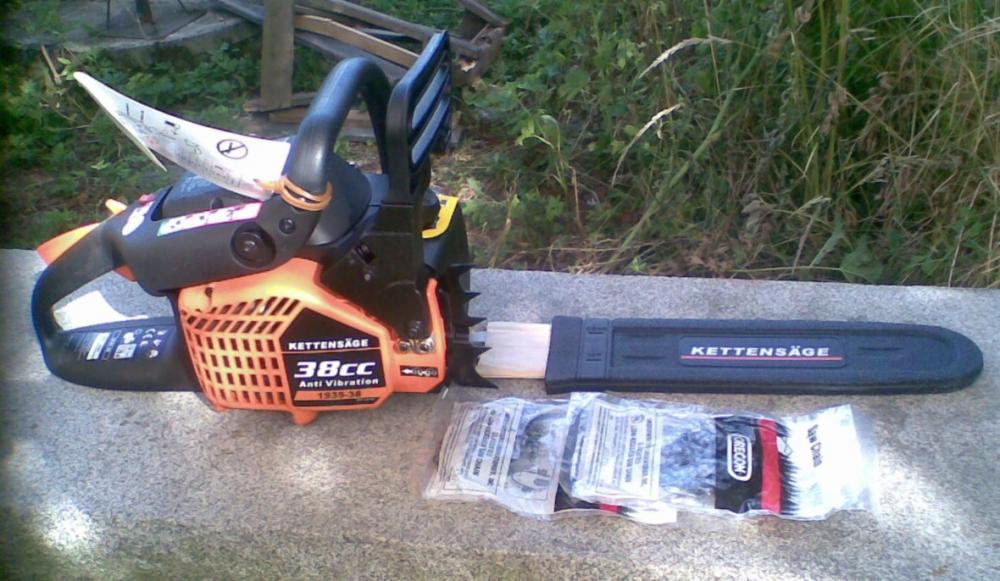 Prodám nepoužitou, novou motorovou pilu Kettensage 1935 - 38 německé výroby. Žádná Čína. Zdvihový objem motoru 38 ccm, max. hnací výkon 1,4 kW/1,9PS, antivibrační funkce, rychlost řetězu 12m/s, benzín/olej 40:1. K pile mám dva nové řetězy. Cena za vše nové nyní jen 2.980 Kč, SMS ne. Telefon.