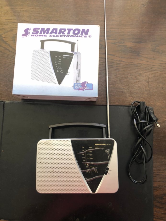 Přenosné, funkční, zachovalé radio SM 2010 Smarton Home Electronics. Portable radio; AC/DC Power. Stříbro-černý displey, výška 13cm, šířka 20cm, hloubka 5,5cm. Frekvenční rozsah: VKV (FM) 87,5-108 MHz, AM 530-1610 kHz. Teleskopická anténa. Konektor pro připojení sluchátek. Konektor pro připojení síťového kabelu. Phone Jack, AC socket. Síťový kabel. Power Source: AC 230V, DC 6V (4 tužkové baterie 1,5V). Praha. Cena dohodou.