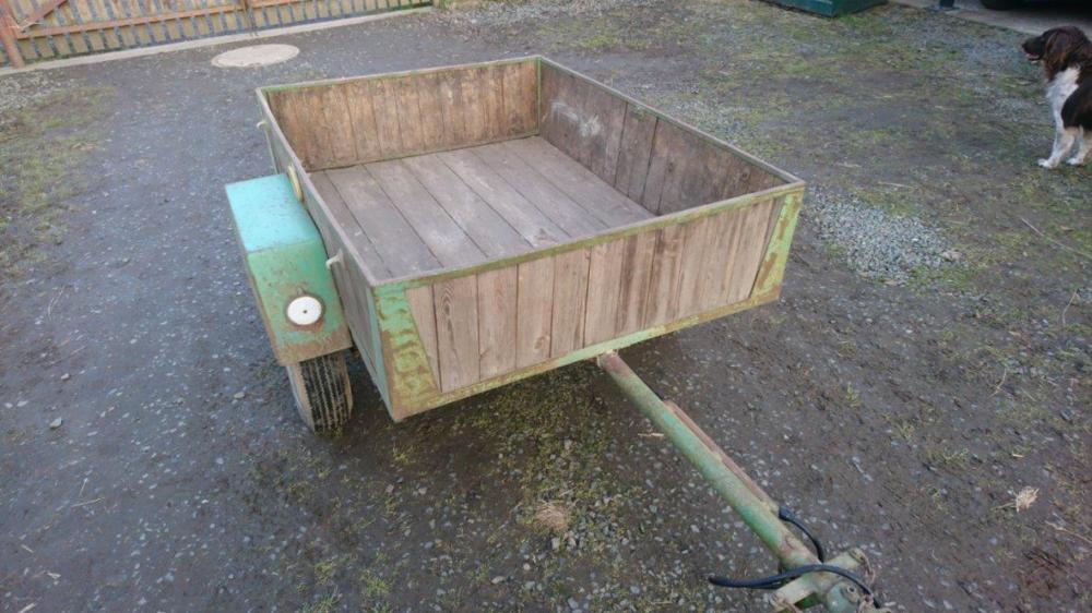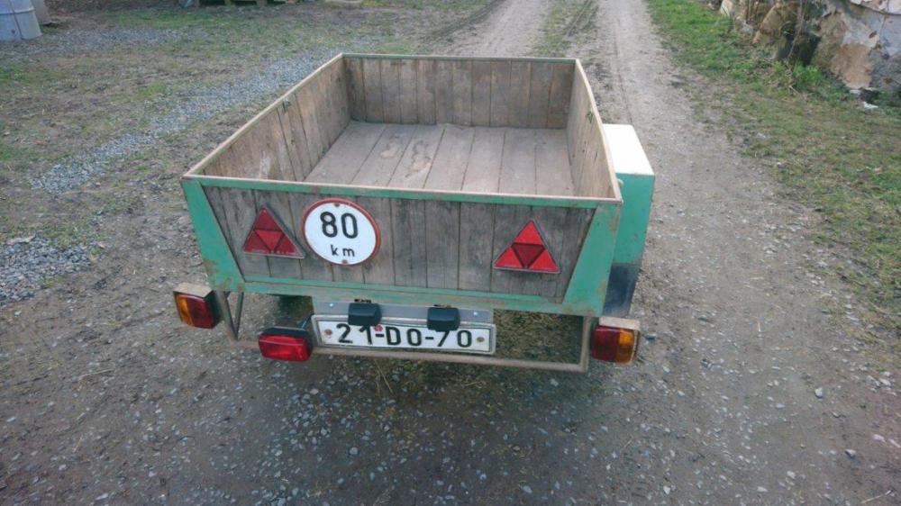 Přívěsný vozík má nákladový prostor (bez oje a blatníků) o velikosti 140cm na délku, 105 cm široký a sajtny jsou 30 cm vysoké, má TP a zaplacené zákonné pojištění, má novou platnou STK. Je na listových perech s dorazy, má komplet novou elektriku a osvětlení. Nikde není prorezlý ani výrazně poškozený, jen mu chybí drobet péče se štětcem a barvou (viz foto), ale jinak poctivá konstrukce z ještě tenkrát možné vlastní výroby. Důvod prodeje je pořízení většího vozíku a proto tento už není využití.