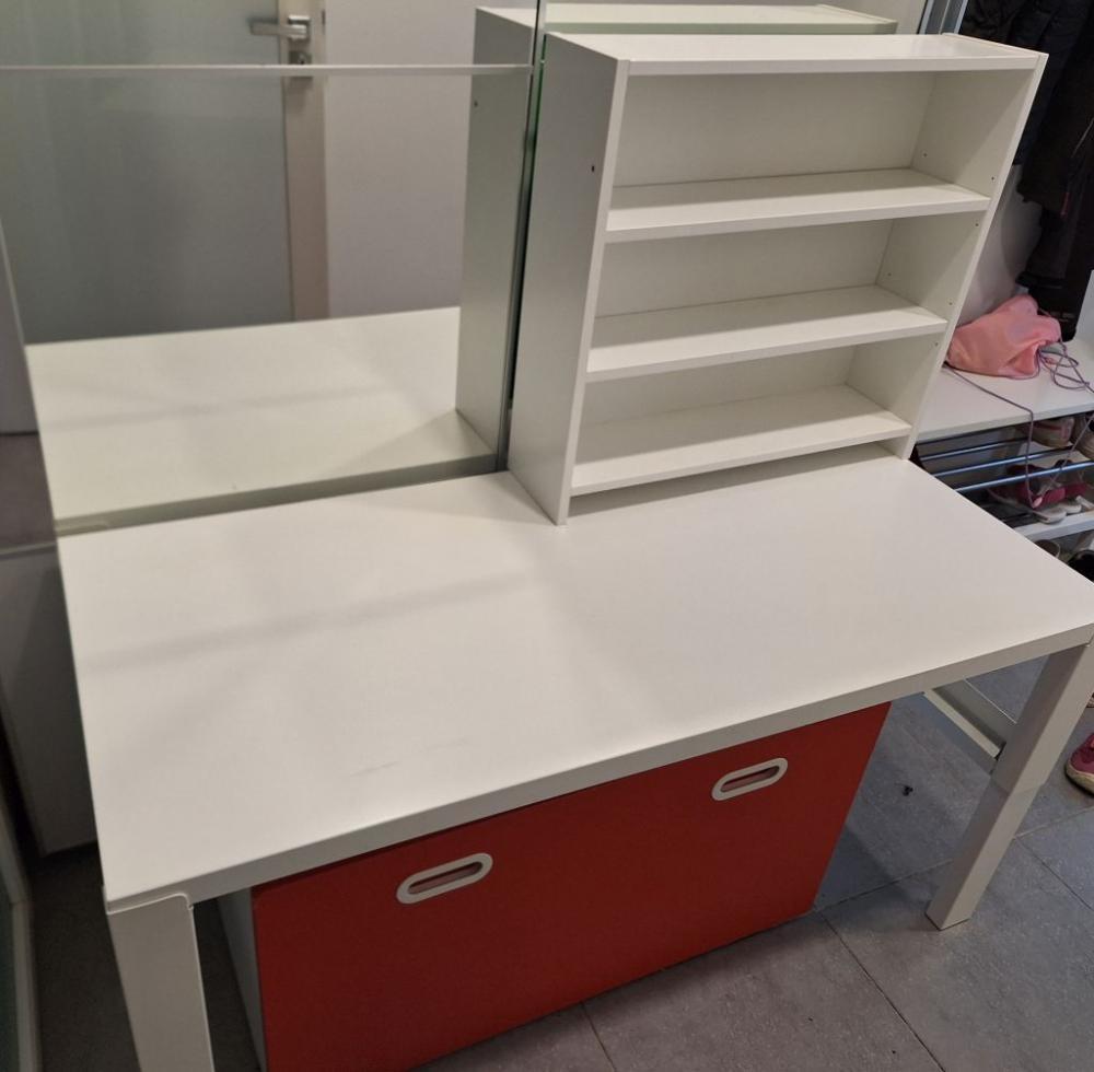 Prodám sestavu dětského nábytku IKEA SMASTAD/PAHL, která sestává ze 2 skříní s třemi zásuvkami, skříně s dlouhými dveřmi, knihovny, lavice s výsuvem, stolu s policí a židle.