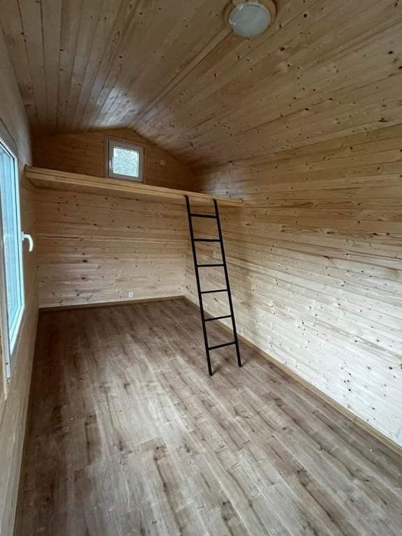 Prodám zahradní zateplený domek s postelí. 6x2,6x3m. Ocelová kostra, smrkové palubky jakost A. Nalakováno 2 vrstvami laku. Plovoucí podlahy, osvětlení vnitřní i venkovní. Plastové dveře a okna. Zásuvky na 220V. Vše vyrobeno z nového materiálu. Více informací tel. 180.000 Kč.