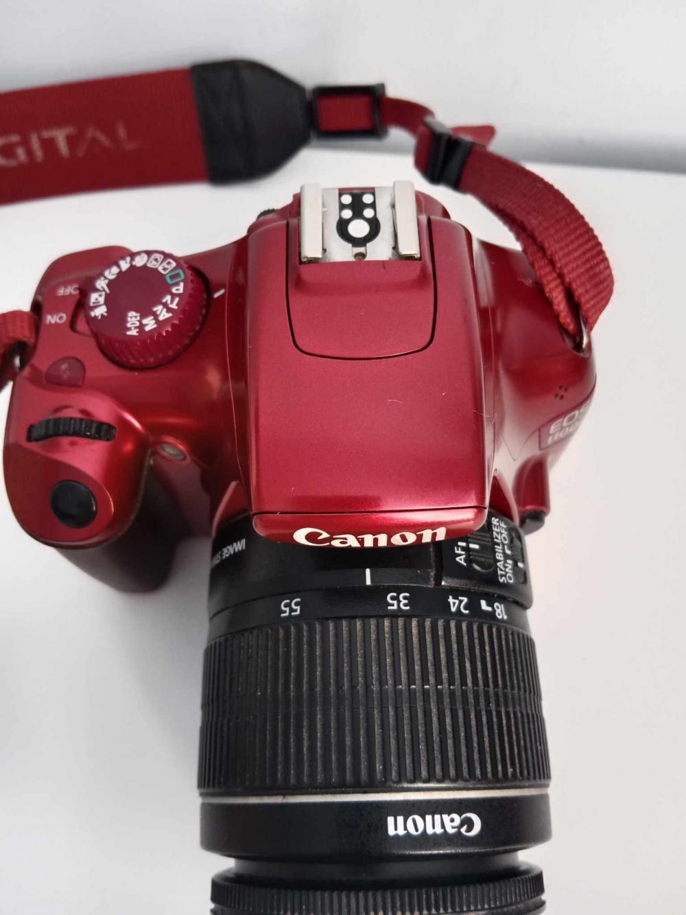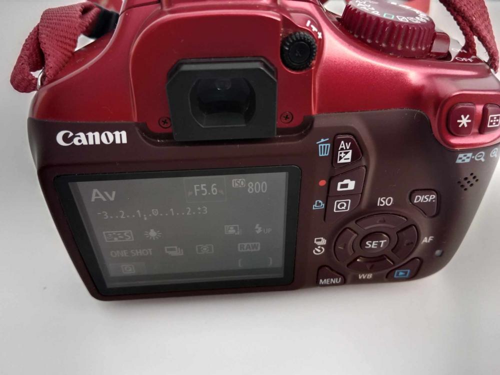 Prodám zrcadlovku Canon EOS 1100 D v červené barvě i s objektivem, batérií a nabíječku na baterií. Cena za všechno 5.500 kč,-