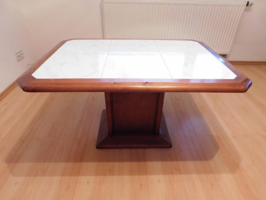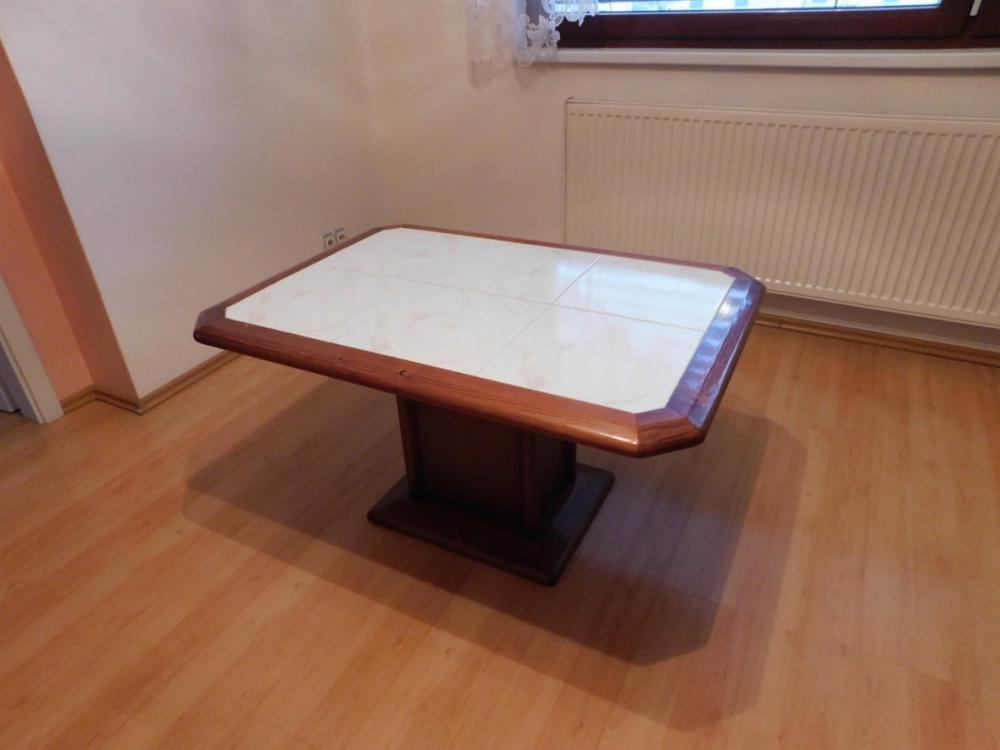 Prodám pěkný, moderní konferenční stolek, hnědé dřevo masiv, povrch desky stolu je z odolných keramických desek s lesklou glazurou (viz. foto). Výborný stav, nikde nepoškozený. Rozměry: výška 56 cm, deska 106 x 76 cm. Důvodem prodeje je prodej bytové jednotky. Nutnost vlastního odvozu (Praha 3). Prodejní cena 490 Kč. Tel.: každý den po 14.00hod. vč. víkendů.