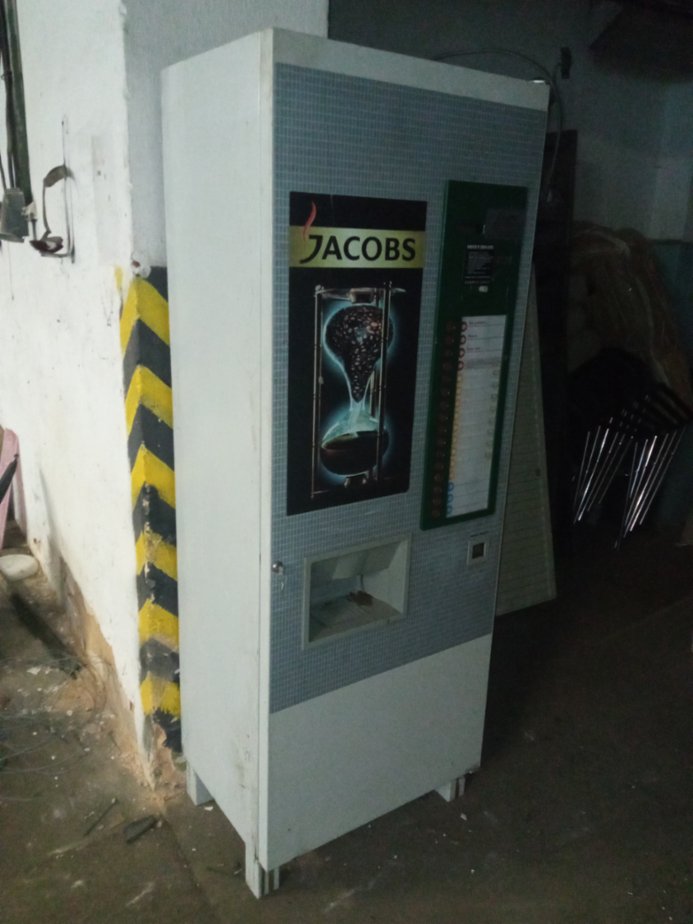 Prodejní automat na výrobu kávy a teplých nápojů. Potřeba servisní revize.