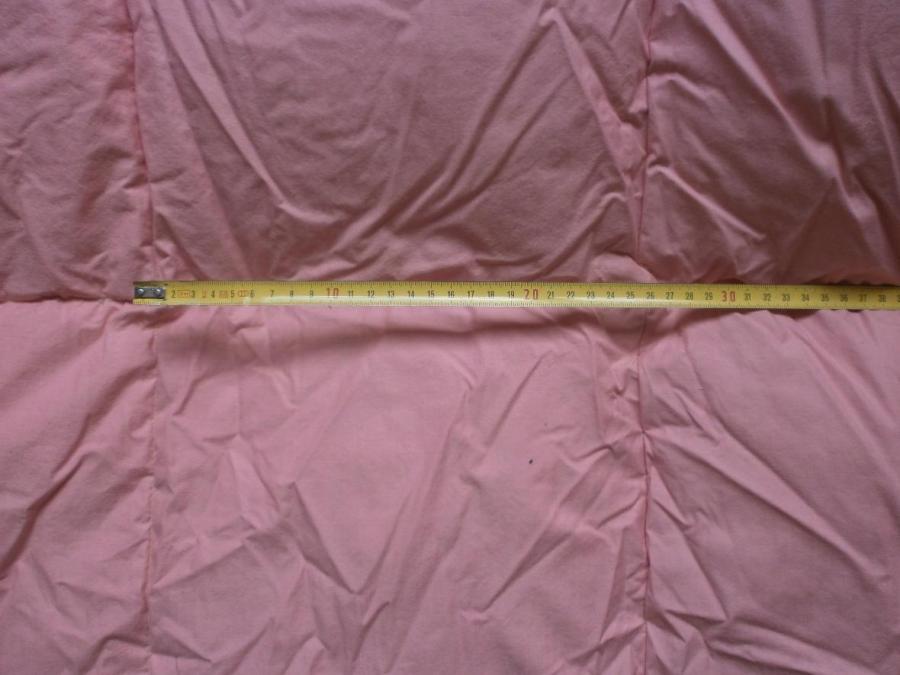 Růžový sypek z kvalitní tenké bavlny. Původní rozměry sypku jsou 210 x 190 cm, po prošití je deka o trochu menší (asi 205 x 185 cm). Uvnitř je nové husí ručně drané prachové peří. Jedna deka je úplně nová, nepoužívaná - druhá trochu používaná, ale vyčištěná. Obě jsou šité na zakázku jako široké lehké peřiny pro jednu osobu, prošívání do čtverců (25 x 25 cm). Cena 1.700 + 1.200 Kč, možno i jednotlivě. Vhodné jako dárek - v Praze v dosahu MHD dovezu.