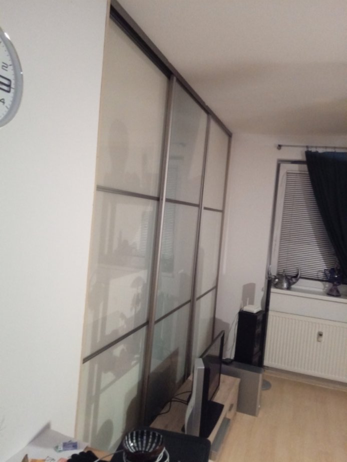 Prodám zachovalou posuvnou prosklenou stěnu která se skládá ze tří kusů. Posuvné dílce tvoří hliníkový rám s matným sklem connex a horní+ dolní kolejnice s dvěma řadami. Výšku lze jednoduše upravit. Náčrt stěny s mírama přikládám v podobě fotky. 10.000 Kč.