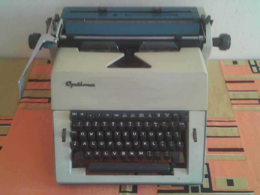 Kancelářský psací stroj Optima, včetně barvících pásek. Vyrobený v Německu. Funkční - cena 1.500 Kč.