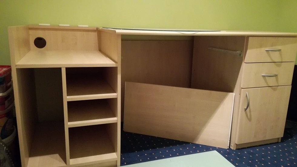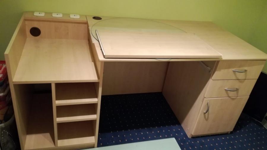 Prodám větší psací stůl, dělaný na zakázku - dekor bílá bříza rozměr: d. 176 cm – hl. 80 cm - v. 80 cm. Velmi málo používaný a je ve velmi dobrém stavu. Vlastní odvoz nutný. 3.500 Kč.