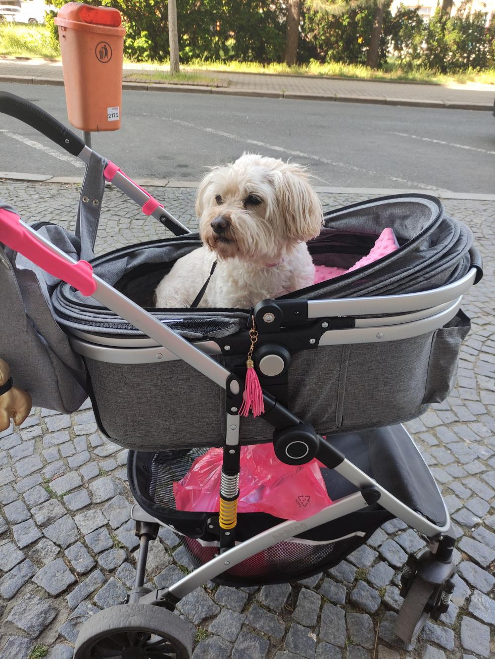 Prodávám psi kočár půl roku používaný je to i jako autosedačka uveze až 20 kg je lehký krásné se s ním jezdí