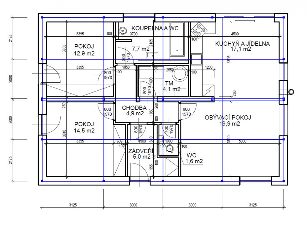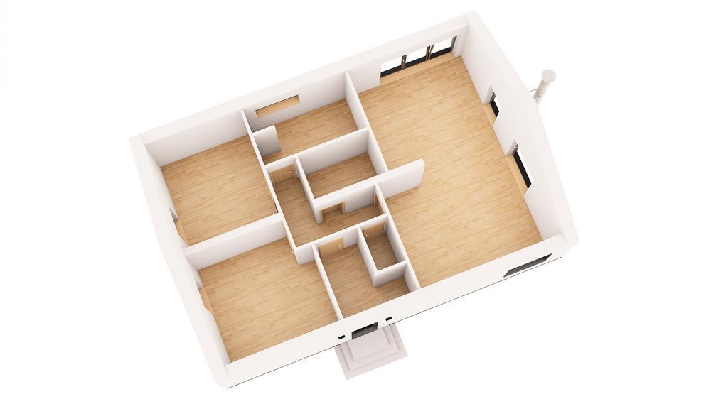 Tento dům je možné naprojektovat také jako 4+KK jednoduchým přepažením obývacího pokoje a kuchyně.