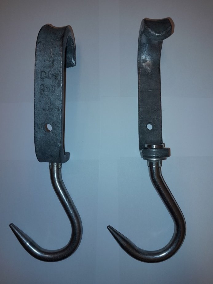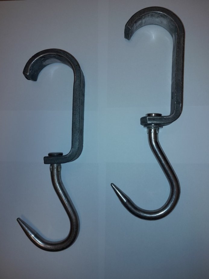 Řeznické euro háky - délka 34cm, šíře 10cm, hmotnost 1,4kg, nosnost 250kg nerez. Stav použité . Velmi dobrá cena. Možno zaslat i poštou