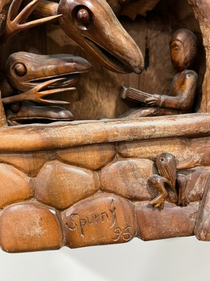 Nabízím umělecký předmět vyřezávaný ze dřeva od uznávaného uměleckého sochaře, keramika, řezbáře a také v neposlední řadě restaurátora fasádních soch pana Richarda Spurného!! Jedná se o dílo s názvem.: Pohádka na draka. Předmět je velký 120 cm na výšku a byl vyroben v roce 1996. Vyřezáván byl z jednoho kusu dřeva. Jedná se o ruční práci, každý předmět od tohoto umělce je originál a vždy je vyroben jen jeden kus. Min. hodnota tohoto díla je 100.000 Kč.