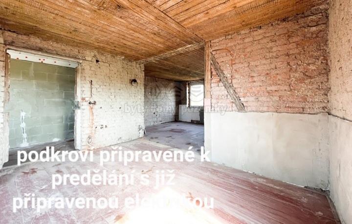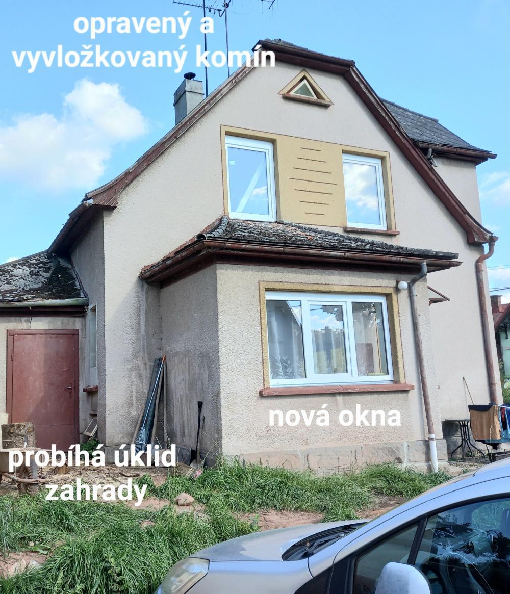 Dům je po částečné rekonstrukci- nová Vekra okna v celém domě, rozvody vody v plastu, napojeno na obecní kanalizaci, vyvložkovaný a opravený komín, elektřina vyvedena až na půdu, v horním patře stačí propojit do zásuvek, nová pojistková skříň, krbová kamna s výměníkem, kombinovaný bojler v patře, kde je vyvedena voda, betonové podlahy, sádrokartonové stropy...Spodní patro obyvatelné- ložnice, kuchyň, chodby, komora, koupelna a wc. Horní patro stačí nahodit a vyštukovat a dá se také obývat. Zahrada menší v okolí domu. Za domem větší množství kamení po původních majitelých, které se stále odklízí, proto je dům levnější. Při rychlém jednání dáme ještě dodatečnou slevu z ceny.Součástí garáž a přístavek k rekonstrukci či zbourání. Po zbouráni se o dost zvětší zahrada.Parkování u domu. Pouze jedni sousedé. Prohlídky možné každý den po domluvě.