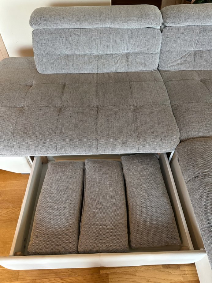 Rozkladaci pohovka 250x300 - čištěná každý půlrok . Běžné opotřebení za pět let . Pořizovací cena 42.000 Kč. Nyní 6.500 Kč.