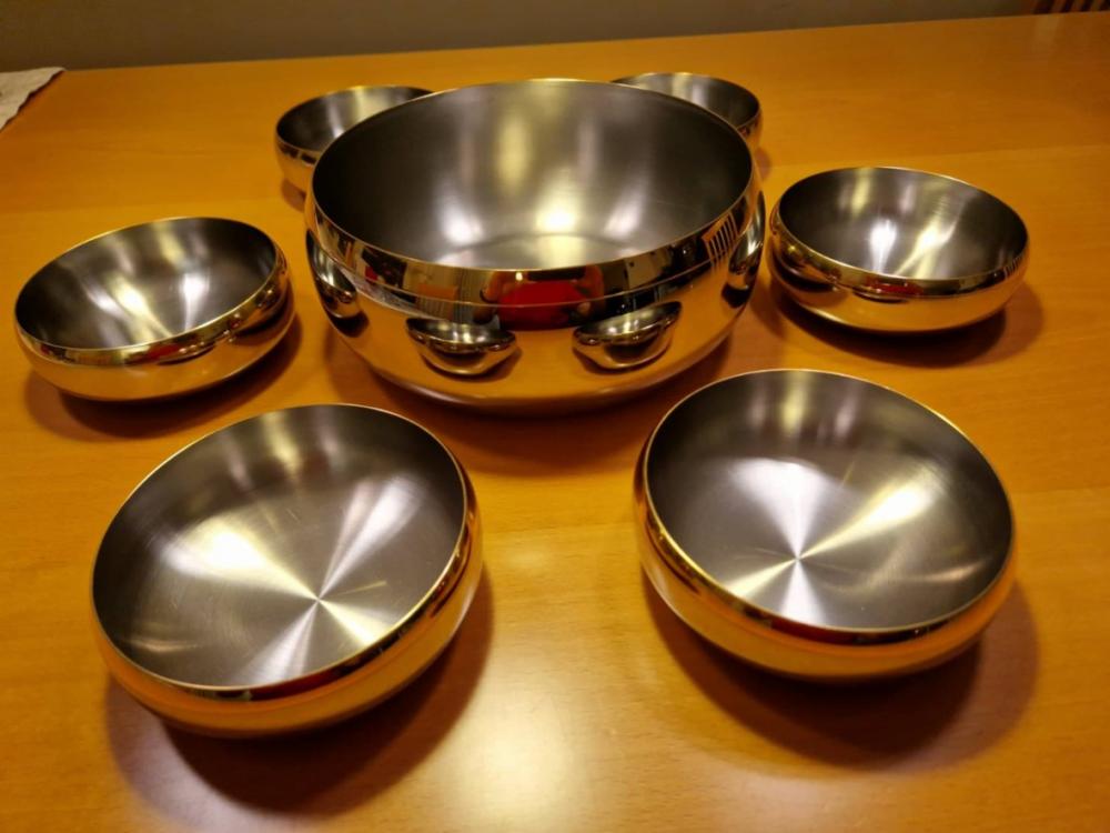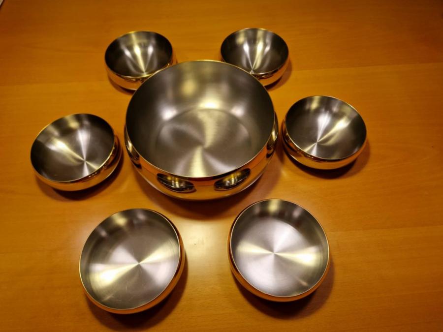 Prodám nepoužívanou sadu 6 salátových misek + salátové mísy z nerezové oceli se zlatým proužkem (ocel CRNi 18/10). Koupě Zepter není pouze celoživotní investicí, ale také investicí pro další generace. Exkluzivní, krásný a nadčasový design soupravy vkusně doladí každý interiér. 4.900 Kč