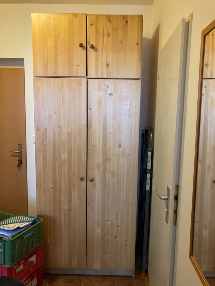 Prodám dřevěnou dvoudílnou skříň s nástavcem nebo samostatně. Masiv-lakovaný smrk, zboží Idea nábytek. Velmi zachovalá, 3 roky jako nová, pouze šatní (tyč na ramínka), bez polic. Rozměry skříně: výška 180 x hloubka 55 x š. 90cm, rozměry nástavce: v. 50 x hl. 55 x š. 90 cm . Nižší cena skříně s nástavcem: 3.500 Kč, samostatně skříň 3.000 Kč, sam. nástavec 1.000 Kč, vlastní odvoz (Praha 10 - Horní Měcholupy), důvod: stěhování mimo Prahu.