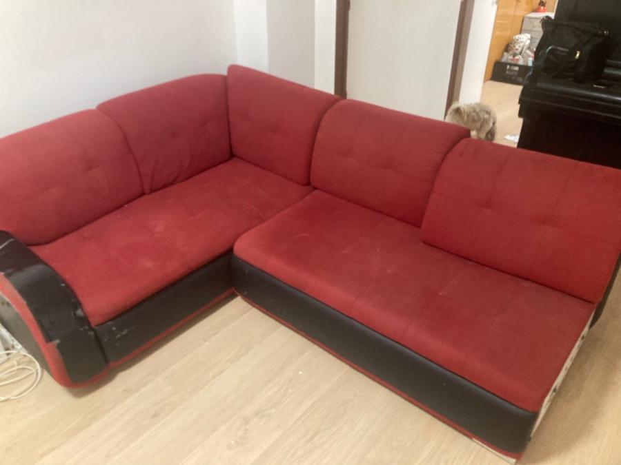 Sedací souprava za odvoz, dvoudílná, červená, zachovalá, nutno snést z druhého patra.